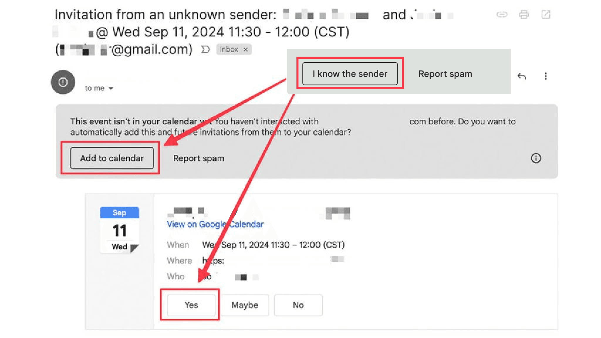 "Add to calendar " and "Yes" for the calendar invitation